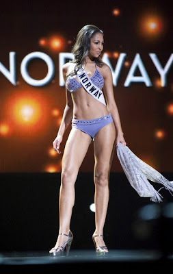 Miss Norway 2010 Melinda Elvenes performs in her swimsuit by Dar Be Dar Swimwear during the Presentation Show for the 2010 Miss Universe Pageant at Mandalay Bay Event Center in Las Vegas, Nevada August 19, 2010. The Miss Universe 2010 competition will be aired live on August 23, 2010.